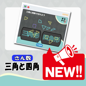 このコンテンツでは、「○○は学校の北にあるよ」「公園は図書館の西だね」といったヒントをもとに、建物の場所を考えたり、移動したりする問題に取り組みます。